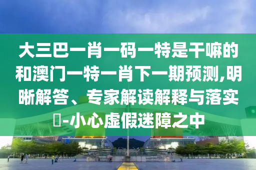 大三巴一肖一碼一特是干嘛的和澳門一特一肖下一期預測,明晰解答、專家解讀解釋與落實?-小心虛假迷障之中
