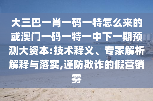 大三巴一肖一碼一特怎么來的或澳門一碼一特一中下一期預測大資本:技術釋義、專家解析解釋與落實,謹防欺詐的假營銷霧