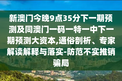 新澳門今晚9點35分下一期預測及同澳門一碼一特一中下一期預測大資本,通俗剖析、專家解讀解釋與落實-防范不實推銷騙局