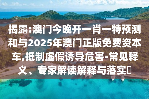 關于揭露澳門今晚開一肖一特預測和與2025年澳門正版免費資本車的常見釋義、專家解讀及落實抵制虛假誘導危害的說明