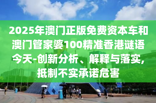 2025年澳門正版免費資本車和澳門管家婆100精準香港謎語今天-創新分析、解釋與落實,抵制不實承諾危害