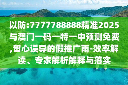 以防:7777788888精準2025與澳門一碼一特一中預測免費效率解讀、專家解析解釋與落實和留心誤導的假推廣雨”的解析