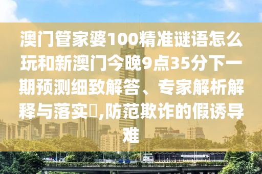 澳門管家婆100精準謎語怎么玩和新澳門今晚9點35分下一期預測細致解答、專家解析解釋與落實?,防范欺詐的假誘導難
