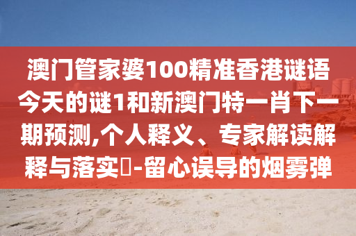 澳門管家婆100精準香港謎語今天的謎1和新澳門特一肖下一期預測,個人釋義、專家解讀解釋與落實?-留心誤導的煙霧彈
