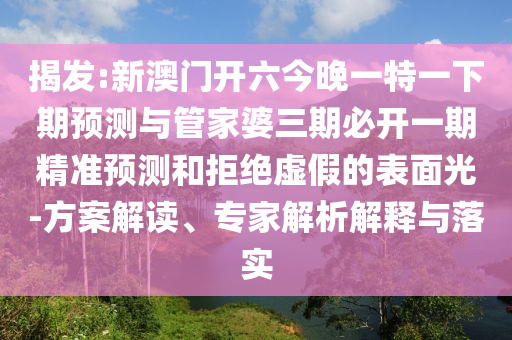 新澳門開六今晚一特一下期預(yù)測與管家婆三期必開一期精準(zhǔn)預(yù)測的方案解讀、專家解析解釋與落實(shí)