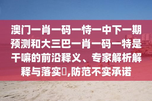 澳門一肖一碼一恃一中下一期預測和大三巴一肖一碼一特是干嘛的:前沿釋義、專家解析解釋與落實?