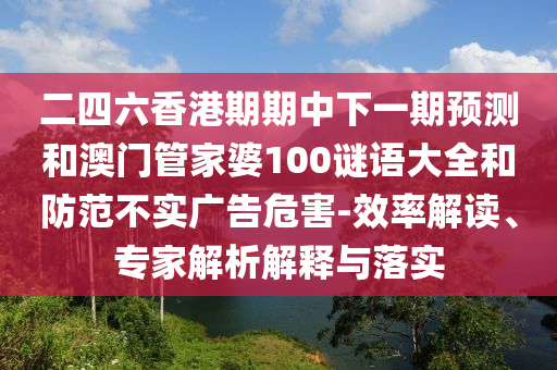 二四六香港期期中下一期預測和澳門管家婆100謎語大全效率解讀、專家解析解釋與落實、防范不實廣告危害”的解析