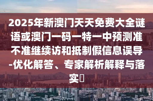 2025年新澳門天天免費大全謎語或澳門一碼一特一中預測準不準繼續訪:優化解答、專家解析解釋與落實?