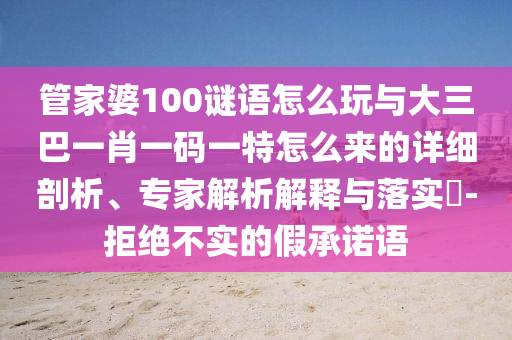 管家婆100謎語(yǔ)怎么玩與大三巴一肖一碼一特怎么來(lái)的詳細(xì)剖析、專家解析解釋與落實(shí)?-拒絕不實(shí)的假承諾語(yǔ)