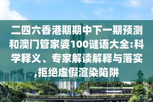 二四六香港期期中下一期預測和澳門管家婆100謎語大全:科學釋義、專家解讀解釋與落實,拒絕虛假渲染陷阱