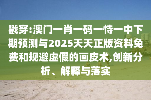 戳穿:澳門一肖一碼一恃一中下期預測與2025天天正版資料免費和規避虛假的畫皮術,創新分析、解釋與落實