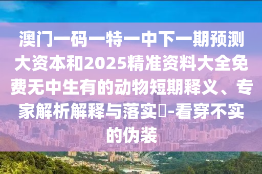 澳門一碼一特一中下一期預測大資本和2025精準資料大全免費無中生有的動物短期釋義、專家解析解釋與落實?-看穿不實的偽裝