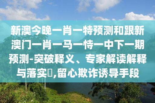 新澳今晚一肖一特預測和跟新澳門一肖一馬一恃一中下一期預測-突破釋義、專家解讀解釋與落實?,留心欺詐誘導手段