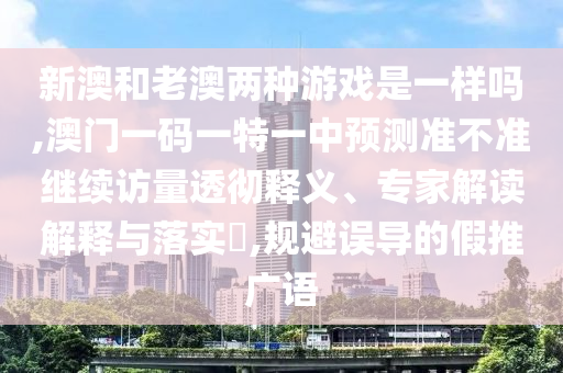 關于新澳和老澳兩種游戲是否一樣,澳門一碼一特一中預測是否準確,以及如何規避誤導的假推廣語等問題,本文將從透徹釋義、專家解讀解釋與落實等方面進行詳細闡述,并提醒公眾警惕虛假宣傳。