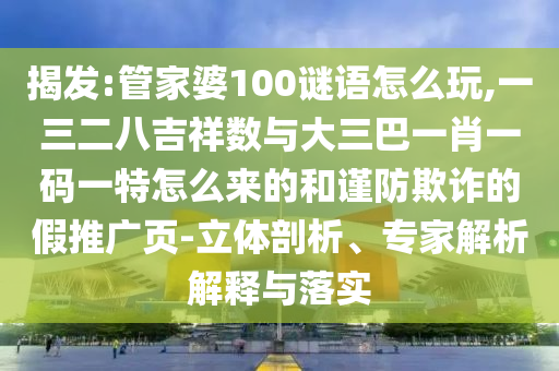 管家婆100謎語怎么玩,一三二八吉祥數與大三巴一肖一碼一特怎么來的”以及“謹防欺詐的假推廣頁”的立體剖析、專家解析解釋與落實