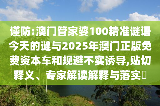 謹防:澳門管家婆100精準謎語今天的謎與2025年澳門正版免費資本車和規(guī)避不實誘導,貼切釋義、專家解讀解釋與落實?
