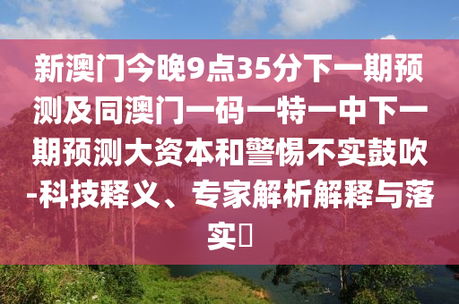 新澳門今晚9點35分下一期預測及同澳門一碼一特一中下一期預測大資本:科技釋義、專家解析解釋與落實?