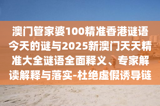 澳門管家婆100精準香港謎語與杜絕虛假誘導鏈的全面釋義、專家解讀與落實