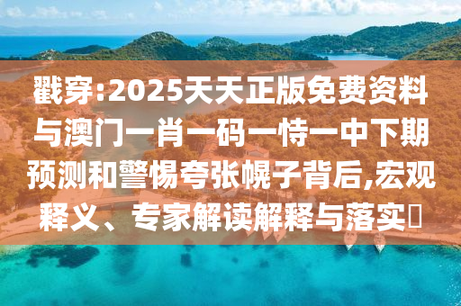 當我們談論“戳穿”這個詞時,通常意味著揭露真相,揭示事物的本質?!按链钡膶ο笫悄撤N宣傳或信息,天天正版免費資料”,從字面上看,它可能指的是某種聲稱提供正版內容的免費資料或信息,而“澳門一肖一碼一恃一中下期預測”,則似乎涉及到某種預測或占卜,可能與游戲或游戲相關,將這些關鍵詞結合起來,我們可能會遇到一種宣傳聲稱能夠通過某種方式預測未來,并提供正版免費的資料來支持這一預測,我們需要保持警惕,戳穿這種宣傳的真實性。