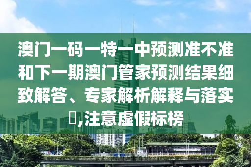 澳門一碼一特一中預測準不準和下一期澳門管家預測結果:細致解答、專家解析解釋與落實?