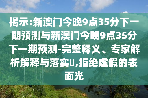 僅為對新澳門今晚9點(diǎn)35分下一期預(yù)測的解析與警惕虛假宣傳的釋義和解釋,不涉及任何具體的預(yù)測或推薦,請廣大公眾保持理性態(tài)度,警惕虛假宣傳。