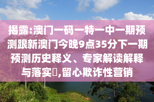 關于揭露澳門一碼一特一中一期預測和新澳門今晚9點35分下一期預測的內容,涉及到歷史釋義、專家解讀解釋與落實以及留心欺詐性營銷等方面,以下是我的分析。