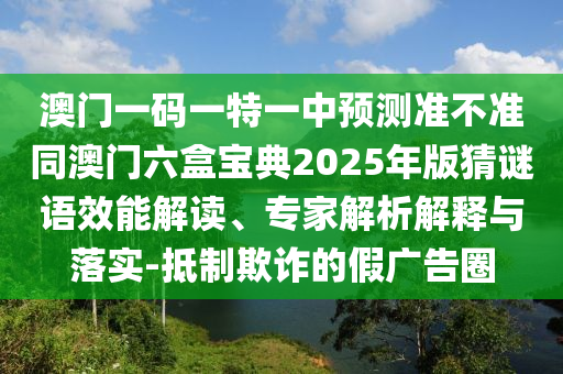 關(guān)于澳門一碼一特一中預測準不準同澳門六盒寶典2025年版猜謎語效能的解讀、專家解析解釋與落實,以及抵制欺詐的假廣告圈