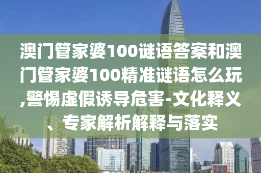 關(guān)于澳門管家婆100謎語(yǔ)答案及玩法——警惕虛假誘導(dǎo)危害,文化釋義、專家解析解釋與落實(shí)