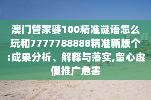 澳門管家婆100精準謎語怎么玩和7777788888精準新版個:成果分析、解釋與落實,留心虛假推廣危害