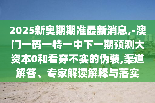 2025新奧期期準最新消息,-澳門一碼一特一中下一期預測大資本0和看穿不實的偽裝,渠道解答、專家解讀解釋與落實