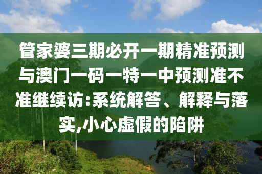 管家婆三期必開一期精準預測與澳門一碼一特一中預測準不準繼續訪:系統解答、解釋與落實,小心虛假的陷阱