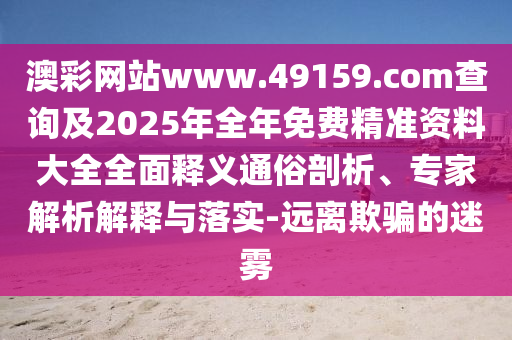 澳彩網站www.49159.соm查詢及2025年全年免費精準資料大全全面釋義通俗剖析、專家解析解釋與落實-遠離欺騙的迷霧