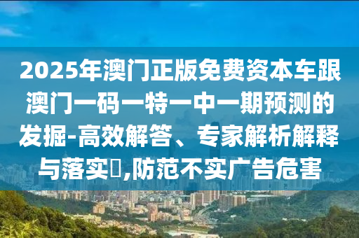 2025年澳門正版免費資本車跟澳門一碼一特一中一期預測的發掘-高效解答、專家解析解釋與落實?,防范不實廣告危害