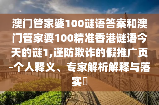 澳門管家婆100謎語答案和澳門管家婆100精準香港謎語:全面釋義、專家解讀與落實、警惕虛假宣傳及謹防欺詐的假推廣頁