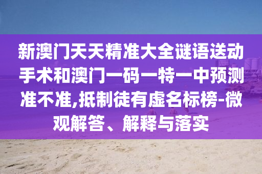 關(guān)于新澳門天天精準(zhǔn)大全謎語送動(dòng)手術(shù)和澳門一碼一特一中預(yù)測準(zhǔn)不準(zhǔn)的微觀解答、解釋與落實(shí),以及抵制徒有虛名標(biāo)榜的警惕提示
