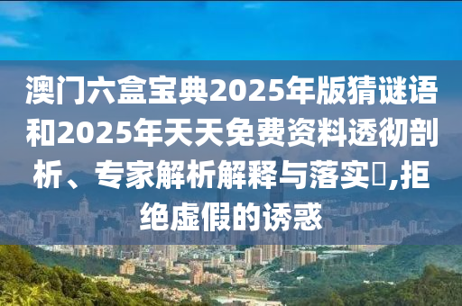 澳門六盒寶典2025年版猜謎語和2025年天天免費資料透徹剖析、專家解析解釋與落實?,拒絕虛假的誘惑