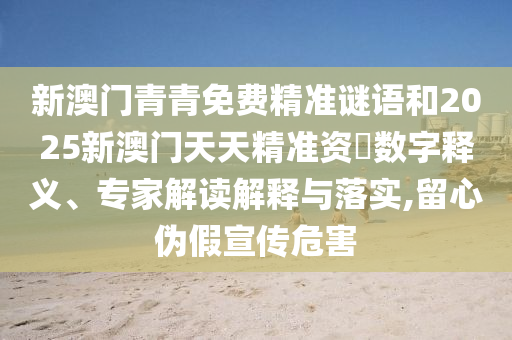 新澳門青青免費(fèi)精準(zhǔn)謎語和2025新澳門天天精準(zhǔn)資料-數(shù)字釋義、專家解讀解釋與落實(shí),以及留心偽假宣傳危害”的全面解析